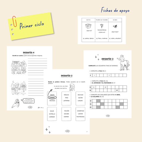 Fichas de apoyo como andamiajes para quienes necesiten una ayuda extra.