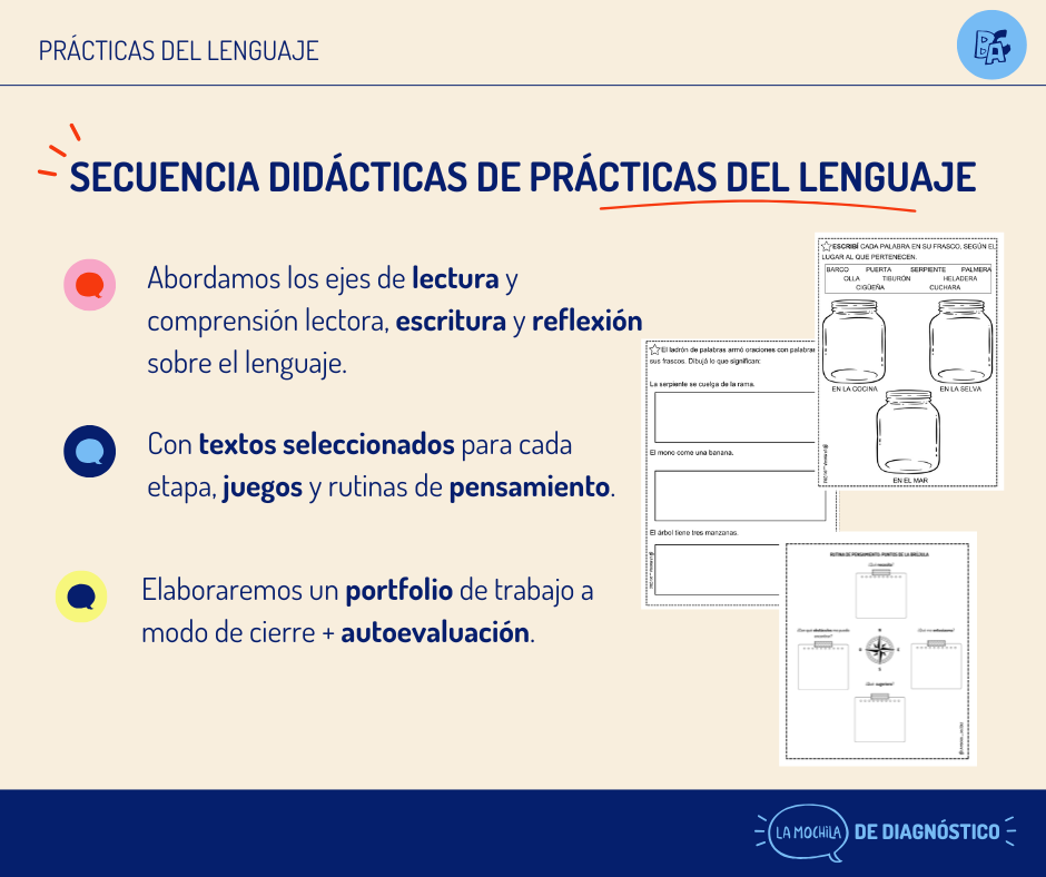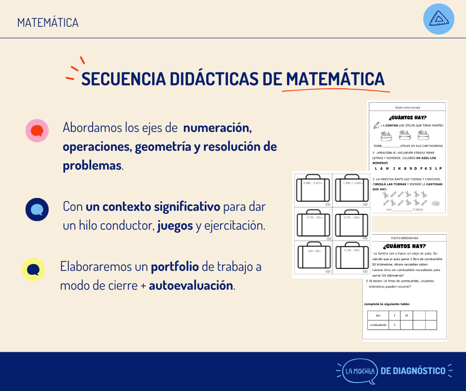 La Mochila del Diagnóstico es un combo de secuencias didácticas de primero a séptimo grados, de Matemática y Prácticas del Lenguaje.