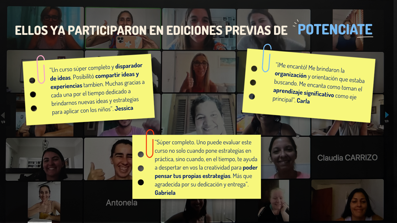 Y también porque tendremos tres encuentros sincrónicos de preguntas y respuestas, y para compartir experiencias, para lo cual es clave haber realizado cada semana el curso.